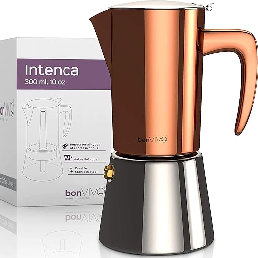 Specification: bonVIVO Intenca Stovetop Espresso Maker – Luxurious, Stainless Steel Italian Coffee Maker for Camping or Home Use – Makes 6 Cups of Full-Bodied Coffee – Copper, 10oz