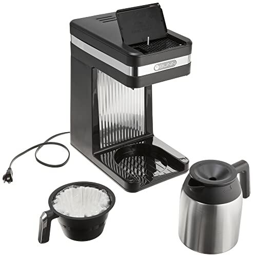 - Vacuum-insulated thermal carafe keeps coffee hot for 2+ hours