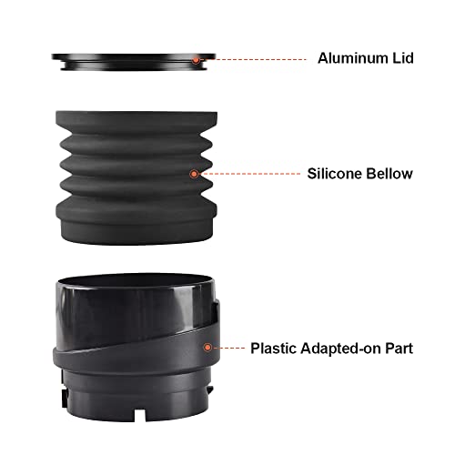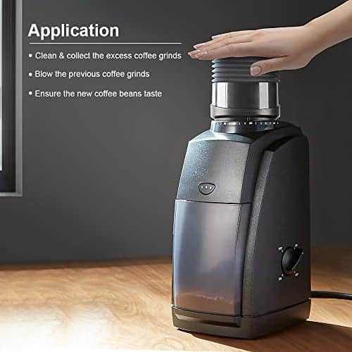 Before cleaning the coffee grounds with this dose hopper, turn on your coffee grinder machine and adjust the grind setting to the coarsest gear. Then, press the silicone bellow up and down to blow away the residual coffee grounds. The tough silicone bellow with aluminum lid is designed for long-lasting use.