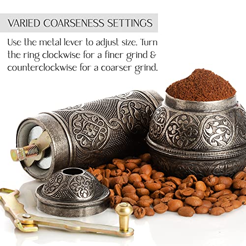 Specification: Crystalia Refillable Coffee Grinder, Authentic Manual Mill with Adjustable Grinder, Metal Coffee Mill with Handle, Antique Coffe Grinder with Hand Crank, Adjustable Coarseness