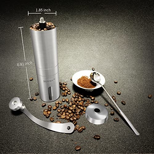 DAURUNFY Manual Coffee Grinder Portable Hand Coffee Bean Mill with Ceramic Adjustable Knob Setting Stainless Steel Coffee Grinder in Kitchen and Hiking (SILVER)