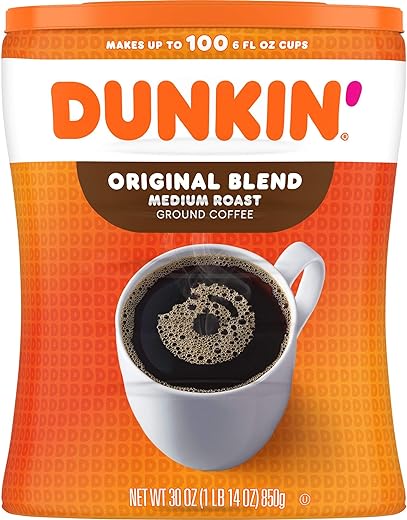 - Dunkin’ Original Blend Medium Roast Ground Coffee, 30 Ounce