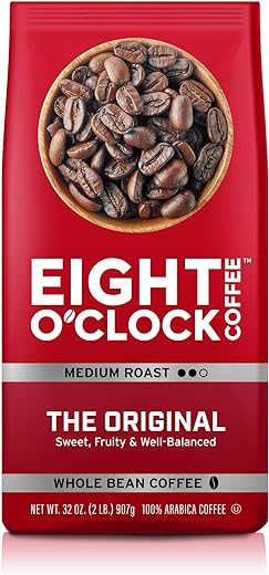 18919 reviews for Eight O’Clock Coffee The Original, 32 Ounce (Pack of 1) Medium Roast Whole Bean Coffee, Sweet, Fruity, Well Balanced
