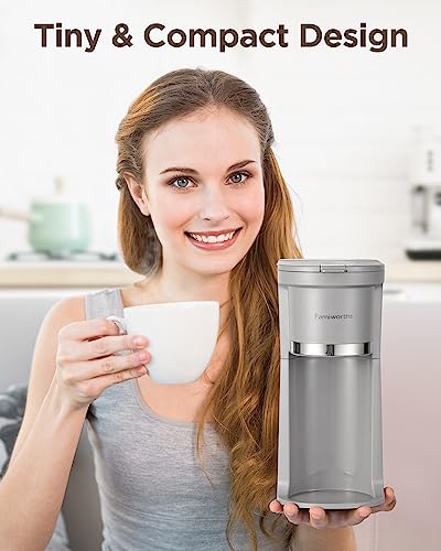 Famiworths Mini Coffee Maker Single Serve, Instant Coffee Maker One Cup for K Cup & Ground Coffee, 6 to 12 Oz Brew Sizes, Capsule Coffee Machine with Water Window and Descaling…