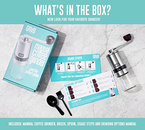GAVO Manual Coffee Grinder with Stainless Steel Burr – Coffee Grinder Manual with Adjustable Settings for Aeropress, Drip Coffee, Espresso, French Press, Turkish Coffee & More!