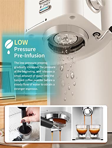 Gevi Espresso Machines 20 Bar Fast Heating Automatic Cappuccino Coffee Maker with Foaming Milk Frother Wand for Espresso, Latte Macchiato, 1.2L Removable Water Tank, 1350W, White