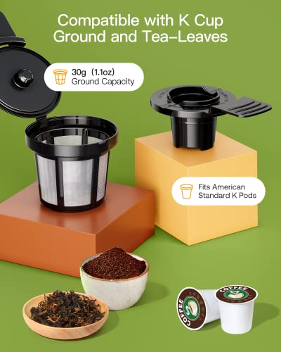 Hot and Iced Coffee Maker for K Cups and Ground Coffee, 4-5 Cups Coffee Maker and Single-serve Brewers, with 30Oz Removable Water Reservoir, 6 to 24Oz Cup Size, Pot and Tumbler…