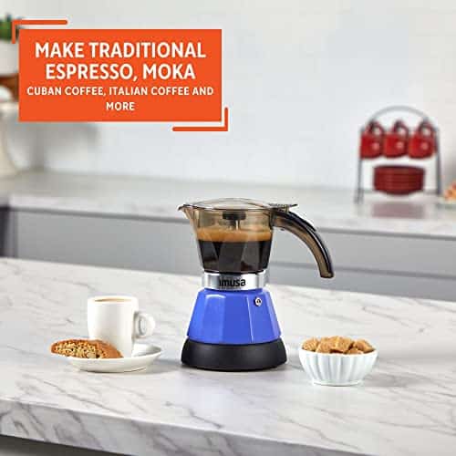 The IMUSA Espresso Maker features a cast aluminum base and a tritan top. These materials provide durability and ensure stability during the brewing process. The aluminum base also helps in evenly distributing heat for a perfectly brewed espresso.