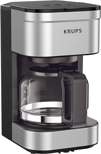 Specification: Krups Simply Brew Stainless Steel Drip Coffee Maker 5 Cup 650 Watts Coffee Filter, Drip Free, Dishwasher Safe Pot, Compact Silver and Black