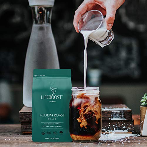 Lifeboost Coffee Whole Bean Medium Roast – Low Acid Single Origin USDA Organic Non-GMO Beans Third Party Tested For Mycotoxins & Pesticides 12 Ounces