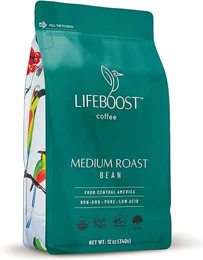 13 reviews for Lifeboost Coffee Whole Bean Medium Roast – Low Acid Single Origin USDA Organic Non-GMO Beans Third Party Tested For Mycotoxins & Pesticides 12 Ounces