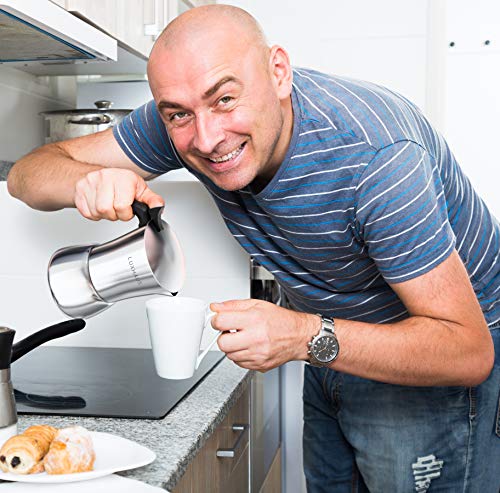 LUXHAUS Moka Pot – 6 Cup Stovetop Espresso Maker – 100% Stainless Steel Italian and Cuban Mocha Coffee Maker