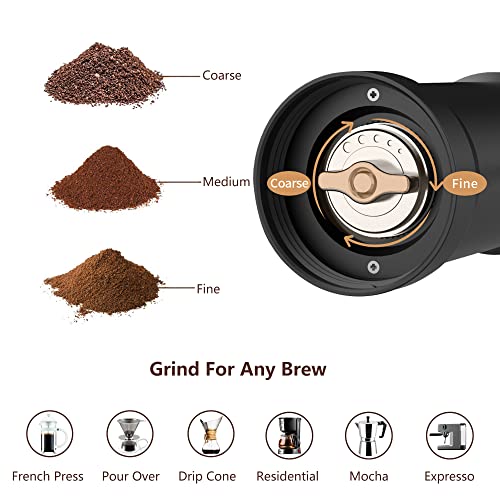 Manual Coffee Grinder, Stainless Steel Conical Burr Hand Coffee Grinder Mill, Adjustable for Fine/Coarse Grind, Perfect for Home and Camping