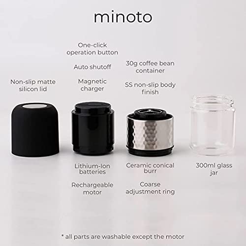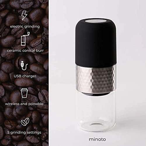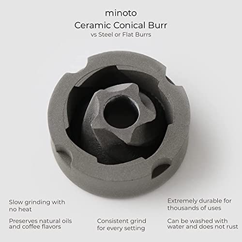 Specification: Minoto Electric Ceramic Conical Burr Coffee Grinder – 5 Adjustable Grind Settings – Whole Bean Mill for Aeropress, Drip Coffee, Espresso, French Press, Cold Brew – Portable &…