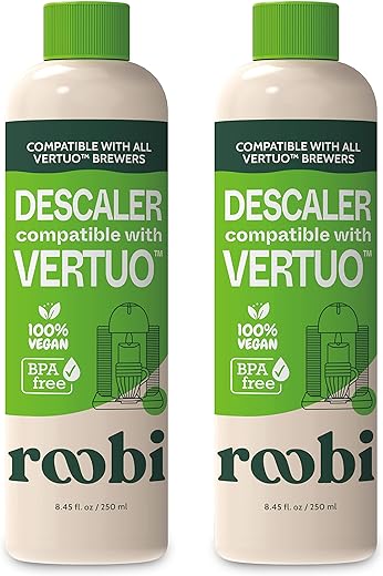 Choosing a Nespresso Vertuo Compatible Descaling Solution like this eco-friendly option from Roobi will ensure that your Nespresso Vertuoline machine stays clean and well-maintained. With its vegan, biodegradable formula and compatibility with both Vertuoline and Originaline machines, this descaling solution offers an effective and sustainable solution for keeping your coffee tasting fresh and your machine performing optimally. Remember to descale your machine every 3 months for best results.