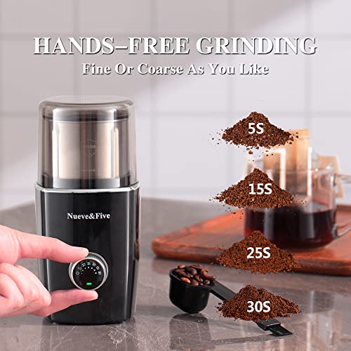 Nueve&Five Cordless Coffee Grinder With Timer, Automatic Coffee Grinder Espresso, Adjustable Coffee Bean Grinder Electric With Removable Stainless Steel Bowl (BLACK)