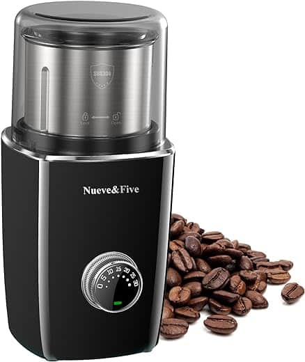 8 reviews for Nueve&Five Cordless Coffee Grinder With Timer, Automatic Coffee Grinder Espresso, Adjustable Coffee Bean Grinder Electric With Removable Stainless Steel Bowl (BLACK)