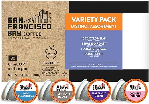 Specification: San Francisco Bay Compostable Coffee Pods – Assorted Variety Pack (80 Ct) K Cup Compatible including Keurig 2.0, Donut Shop, Colombian, Hazelnut, Espresso