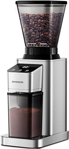 151 reviews for SHARDOR Anti-static Conical Burr Coffee Grinder with Precision Electronic Timer, Touchscreen Electric Adjustable Burr Mill with 48 Precise Settings, Brushed Stainless Steel