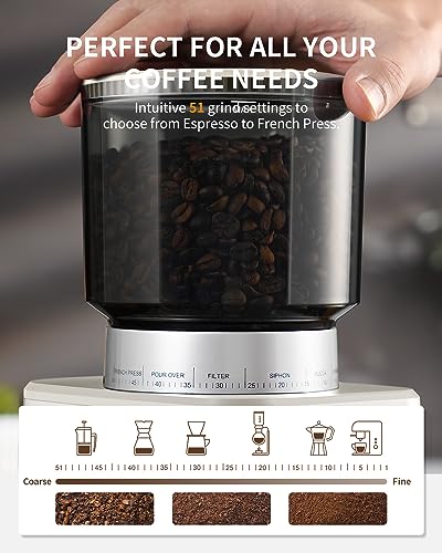 - Customizable Grind: With 51 precise grind settings, you can achieve the perfect grind size for your preferred brewing method, from espresso to French press.