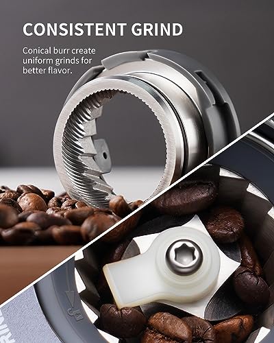 - Durable stainless steel conical burrs for optimal flavor extraction