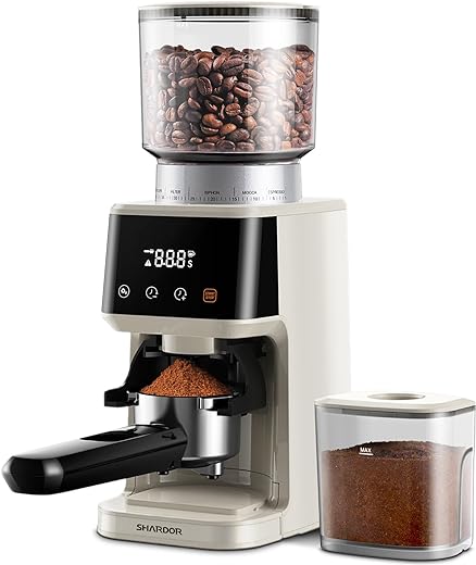 8 reviews for SHARDOR Conical Burr Coffee Grinder Electric for Espresso with Precision Electronic Timer, Touchscreen Adjustable Coffee Bean Grinder with 51 Precise Settings, Beige