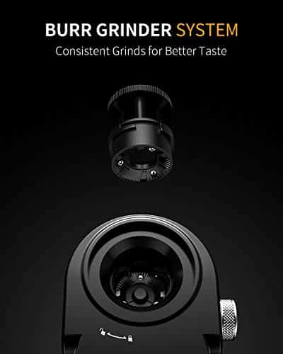 - Adjustable Burr Mill: The grinder comes with a metallic flat burr mill that ensures the coffee beans are not overheated, preserving the full coffee flavor.