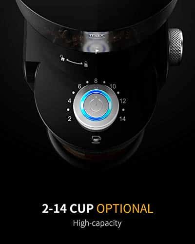 - Grind Quantity Selection: The grinder offers 2-14 cups quantity selection settings, allowing you to grind the exact quantity of coffee beans you need for a single cup or a large gathering.