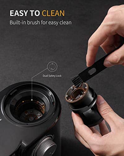 - Easy to Clean: The removable upper burr, hopper, and chamber make it easy to clean. Additionally, a brush is included to assist in the cleaning process.