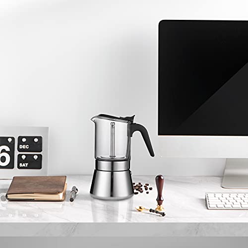 SIXAQUAE Moka Induction Stovetop Espresso Maker,Crystal Glass-top & Stainless Steel Espresso Moka Pot,Classic Italian coffee maker,240ml(6cup)