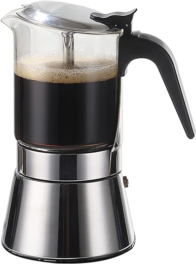 Specification: SIXAQUAE Moka Induction Stovetop Espresso Maker,Crystal Glass-top & Stainless Steel Espresso Moka Pot,Classic Italian coffee maker,240ml(6cup)