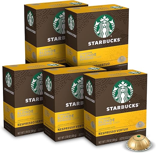 Specification: Starbucks by Nespresso Blonde Roast Espresso (50-count single serve capsules, compatible with Nespresso Vertuo Line System)